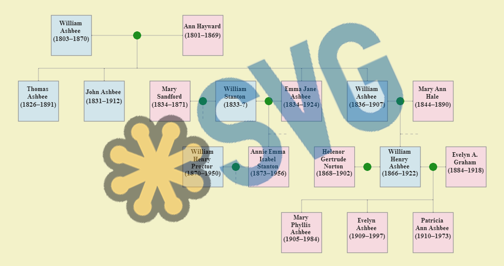 John Ashbee was born c1831 in Westonbirt, Tetbury, and died 22 Apr 1912 at 67 Ringford Road, Wansworth, London.